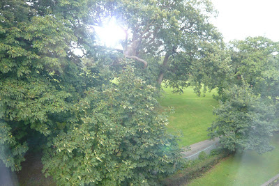 Vista do meu quarto sobre as árvores do campus, na Univ. de Swansea.