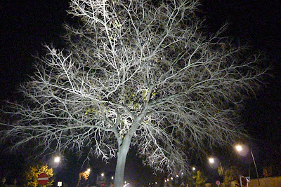 Depois de sair da sessão do "curso" de hoje, ainda me demorei um pouco na noite, desde a Marechal Gomes da Costa - a tirar umas fotos às árvores friorentas e espectrais - até à garagem daqui! Que dia mais cheio!E que solidão.